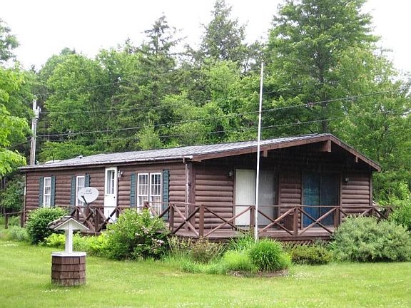 What a lot, what a unit! This cedar log-sided home is perfectly situated on the 2nd level of the park and on a scenic corner. Inside you'll enjoy the wide open spaces and the double sliding doors that lead to a wraparound deck. A ramp is already installed for handicap access convenience. The owner of this home installed sheet rock walls and did some custom carpentry. The interior entry doors are solid, paneled wood with bi-fold doors on the oversized closets. The master bedroom is very large and contains a private bath. Shiny wood laminate floors grace the living/dining areas. Vaulted ceilings give a feeling of grand spaciousness. The garage has an auto-opener and an attached shed for storage and is sided like the home. This warm home sits on a rented spacious lot on Sterling View where you can see the beauty of the mountains.