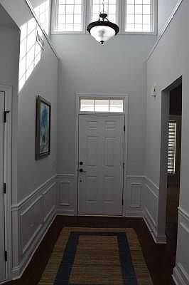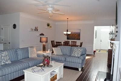 This beautifully appointed low country home is a must see. Fully loaded three bedroom Vernon Hill plan, with custom stonework on the front, located in Charleston's premier 55+ active adult community, Del Webb Charleston. The first thing you will see when entering the home is a dramatic and unique two story foyer. From there you enter the large open great room complete with a gas fireplace and custom built in shelves. There are wide plank wood floors though out that highlight the other upgrades. The kitchen has upgraded wood cabinets with a built in desk that extends into the breakfast area. There is a large pantry, stainless steel appliances with gas slide in range, stunningly upgraded granite with a bar extension for additional seating. Laundry room has custom built in cabinetsThe dining room has upgraded crown molding and wainscoting. The spacious master bedroom features upgraded carpet and a tray ceiling. The master bath has upgraded ceramic tile, two sinks, a separate walk in shower, soaking tub, one of two linen closets and a large walk in closet. The second bath also has upgraded ceramic tile and a custom shower/bath enclosure. The third bedroom is set up as an office with a custom built in desk. The garage has an eight foot extension that is perfect for a work space and includes a laundry sink. Also in the garage is attic storage that is easily accessed with pull down stairs. Off of the kitchen is a spacious screened in porch and a patio to enjoy the beautiful South Carolina weather. Save time to visit the 20,000 square foot amenities center named the Resort. You will have access to the heated indoor pool and spa, outdoor zero entry pool, state of the art fitness center, craft room, social lounge and many more fun things to do in sought after 55+ community. If square footage is important- measure.