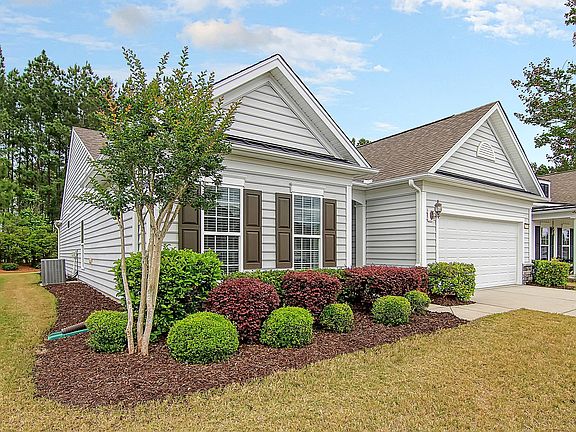 Well-maintained with highly-desirable features like a three-car garage, screened-in porch, open concept kitchen, and brand new carpet in bedrooms, this Vernon Hill 3 bedrooms/2 bath home is sure to impress! The two-story entry way will 'wow' you from the start! Five-inch hand-scraped hardwood floors extend from the foyer into the living & dining rooms, kitchen & breakfast nook. The island kitchen includes granite countertops, maple cabinetry with crown molding, stainless steel appliances with a gas range & French door refrigerator, recessed can, pendant & under-cabinet lighting and a built-in extended desk. The living room offers a cozy gas fireplace and built-in entertainment center with cabinets, and open shelving. Step outside to the screened-in porch with 12'' x 24'' tile floorsoverlooking a private wooded retreat. Back inside, the Owner's Suite features a tray ceiling and en-suite bath with two separate vanities, a walk-in tile shower, soaking tub with tile surround, and a walk-in closet. Two additional bedrooms are located off their own private hallway and share a full bath. A built-in desk in one bedroom makes it the perfect multi-functional space, with plenty of room for a Murphy bed or pull-out couch. The garage space offers a third bay and laundry sink, giving you plenty of space for storage, golf cart parking, or a workshop. Don't miss out on the opportunity to be part of the Charleston-area's premier Active Adult community, Del Webb Cane Bay. With a 20,000 square foot amenities center, over 100 chartered clubs, and a full-time lifestyle director, you will love living your retirement life in South Carolina!