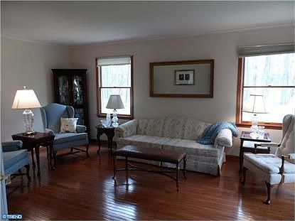 Just freshly painted throughout...this 4 bedroom 3 bath center hall colonial is tucked away on over 2 wooded serene acres. When you enter the foyer you will see the spacious living and dining rooms on either side...all 3 rooms have hardwood floors. The gourmet kitchen has been upgraded beautifully with a large island new appliances granite countertops 12x12 tile flooring and a huge breakfast area overlooking the deck and private back yard. In the family room there is a floor to ceiling brick fireplace hardwood floor and patio doors leading to the all season sunroom with skylights and ceiling fan...a spectacular place to sit and relax. There is also a full bath with walk in shower and a nice sized laundry room on the first floor as well. Upstairs you will find hardwood floors in the hall and master bedroom. There are three nicely sized bedrooms and a hall bath plus the spacious master bedroom with hardwood floors walk in closet and separate bathroom. There is a full basement and an attached two car garage paver walkways and professional landscaping. A One Year Home Warranty is included for new owners peace of mind. Medford has fantastic schools a quaint town and several parks...come see this home and LOVE WHERE YOU LIVE~~~