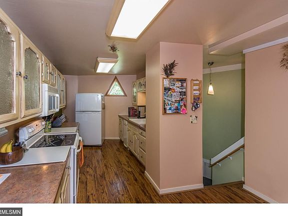 This unique architectural designed home is very well maintained. House features include laminated hardwood style floor throughout kitchen, upper level balcony area overlooking cozy living room, lower level has a pellet stove and additional bedroom, ceramic tile. Oversized yard with privacy fence, 26x32 garage has approximately 250 square feet finished studio.