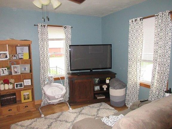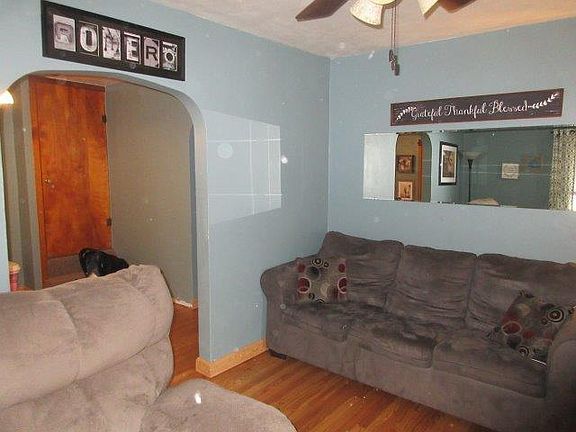 Move in ready home. This 1.5 story home offers lots of recent updates. Roof on house completed last year. Roof on garage will be completed before closing. Both were/are tear offs. New wood flooring in LR, DR, and kitchen. Missing baseboard to be replaced prior to closing. Enclosed front porch. All windows replaced. Sewer line is PVC from house to street. HWH new in 2011. Furnace and AC are newer. Main floor offers two good sized bedrooms, king sized bed in master with room to spare! 3rd bedroom with loft area on upper level. Detatched 1 car garage with automatic openers. Driveway capable of holding 2 maybe 3 vehicles. Nice backyard with patio. Basement offers possibilities as owner was going to make a man-cave. 1/2 bath in basement. Laundry area has cabinets and sink. Workbench in basement. Stove, refrigerator, freezer to remain. Call for appointment today!
