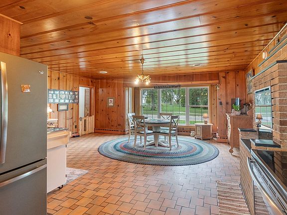 Spacious 3 bedroom Ranch with the oversized windows giving a great view of the Golf Course. Lots of updates to start with on the outside roof & siding 2021, windows 2018, storage shed 2022. Everyone will enjoy the new patio. Come on inside and get the warm inviting feeling with in-floor heat and warm up on those snowy nights with 2 fireplaces. The kitchen is open to the dining, a spacious living room, 3 bedrooms, bath and another 1/2 bath, and the main floor laundry makes for easy living. Then head down to the spacious finished lower level with bar area, huge family room with outside entrance, another bath and even more rooms. The attached garage is heated. This property is conveniently located on a corner lot between the schools.