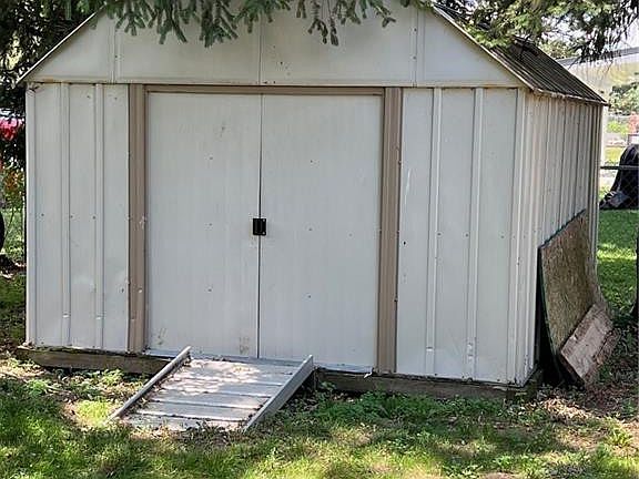 This 3-bedroom, 1.5-bath home is waiting for you. The attached garage, asphalt driveway and fenced in back yard are a bonus. Updates: 2012 Gas Fireplace & Metal Roof - 2013 Heat Pump - 2015 LeValer Blinds(living room) - 2020 Laminate Floor & Amish shed – 2021 windows, patio door & screen, front door & screen- 2023 dishwasher & screen door on garage - 2024 hot water tank & a bladeless ceiling fan in the living room. All appliances stay with the home. The refrigerator in the garage will be the one that stays with the home. The refrigerator that is in the kitchen now does not stay with the home.