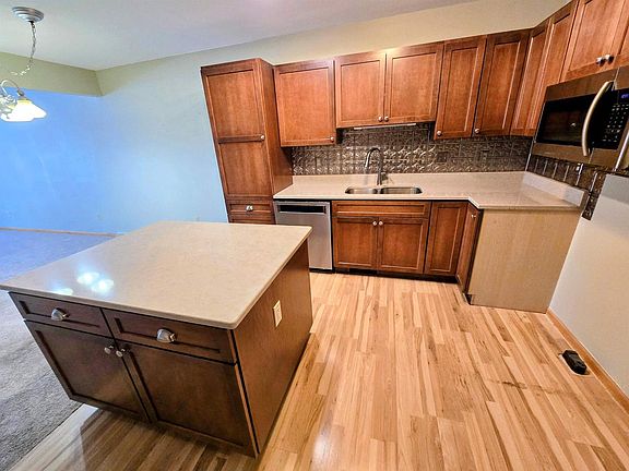 Located in popular Yorkshire Condominiums, this 2 bedroom, 1.5 bath condo has an open concept with cathedral ceilings, skylights, gas fireplace and a walk-out to a nice deck. Updates galore that include the kitchen, bathrooms, flooring, water heater, garage door and opener, deck and more! The lower level has a finished family room for entertaining and a storage area. The attached 2 car garage for convenience and no grass cutting or snow shoveling! The water/sewer is included in the monthly condo dues.