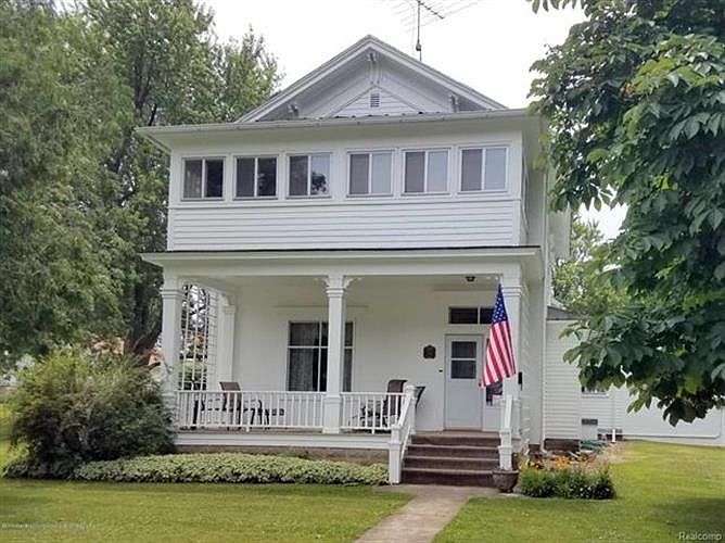 Large 4 BR 2 BA Two story Colonial with huge covered porch with a veranda above. Large rooms with hardwood floors, formal dining room, fireplace, four season room overlooking inground pool, fenced yard. 3 city lots landscaped with mature trees (Chesnut and Maple trees) Park like beautiful yard. It's like a resort without leaving home. Lots of room inside and out. Three blocks to the park, five blocks to schools. You will absolutely love and enjoy touring this historical modest mansion built in 1857 by George Emmons, a wealthy farmer and one of St. Johns early pioneers whom owned many acres of land. The property known as St. Johns city park was donated to the city by Mr Emmons. This gem has been owned by only a handful of lucky families. Lot Dimensions: 165x180