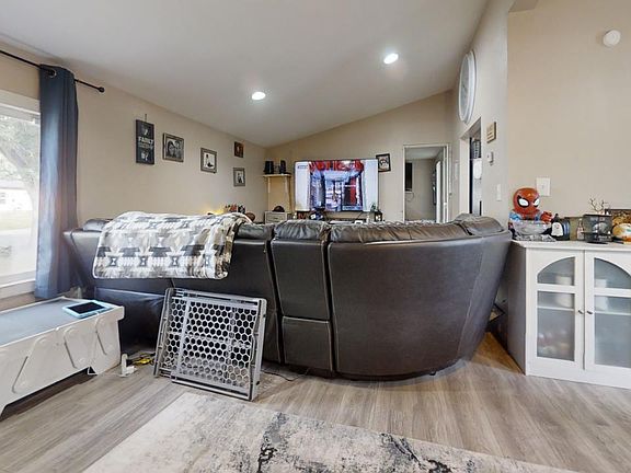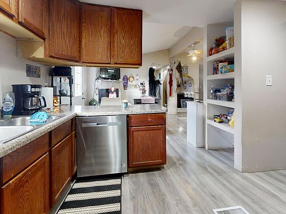 Put your personal touch on this 3 bedroom, 2 bathroom home! The open floor plan invites you in with a spacious living room that flows into the dining area with fireplace. You'll find lots of great cabinet space and storage plus newer dishwasher and refrigerator in the kitchen. The split bedroom design offers a master suite with two additional bedrooms that share a second full bathroom. Newer washer and dryer included. The large backyard offers great entertaining space with above ground pool and convenient garden shed. Fully fenced yard and newer metal roof. Sold as is.