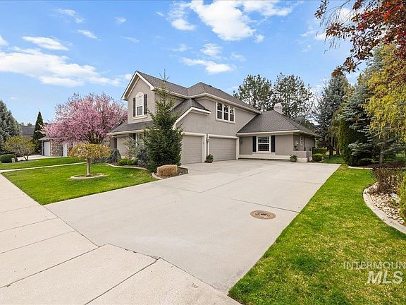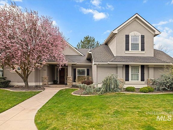 Live the Golf Course Dream in Eagle’s Coveted Banbury Subdivision – Located on the 7th hole tee box of Banbury Golf Course, this stunning 4-bed, 3.5-bath home offers 3,372 sq ft of comfort, elegance, and function—plus low HOA fees and access to a public course. The main-level primary suite features a fireplace, fairway views, spa-like bath, dual vanities, and a walk-in closet. Vaulted ceilings and floor-to-ceiling windows fill the space with natural light. The chef’s kitchen boasts a Viking refrigerator, 6-burner gas cooktop, wall oven, and a dining area that flows into the living room—perfect for entertaining. Also on the main level are two bedrooms connected by a Jack & Jill bath with separate vanities. Upstairs offers a spacious bonus room, fourth bedroom, and full bath—ideal for guests or a private retreat. Enjoy peaceful mornings and relaxing evenings on the covered patio overlooking the beautifully maintained course. Blending luxury and lifestyle in one of Eagle’s most desirable neighborhoods.