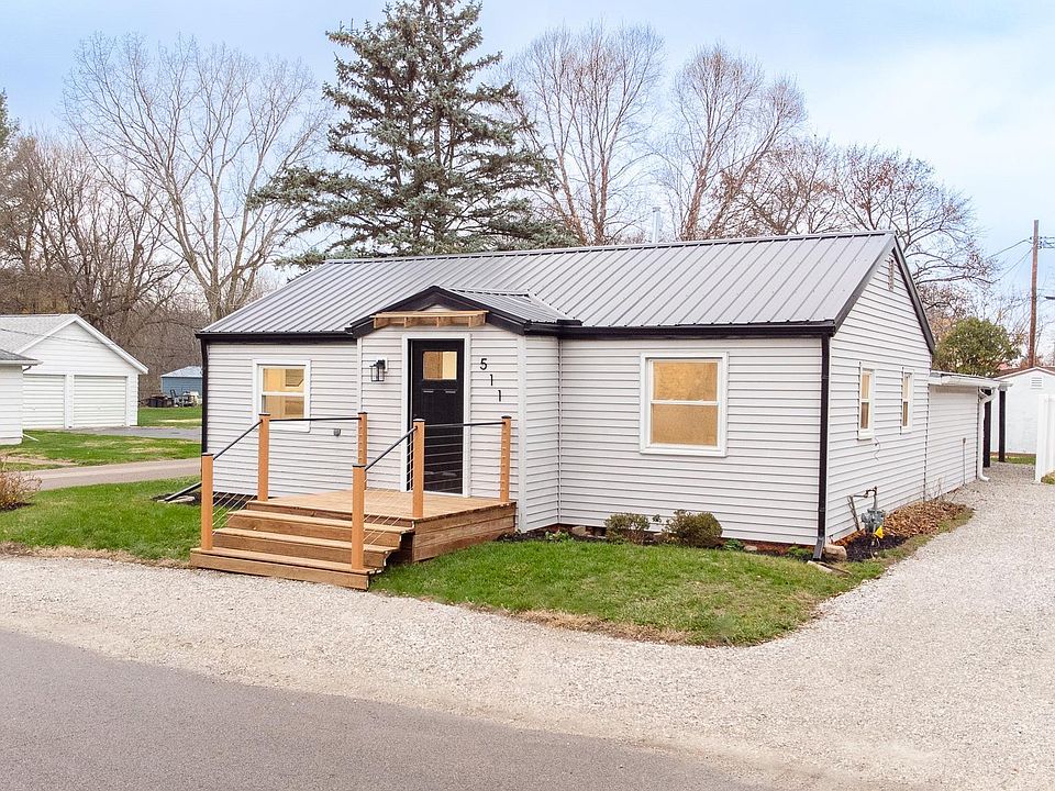 Discover this beautifully updated 3-bedroom, 1.5-bath ranch close to everything in town, offering modern comforts with a welcoming charm. Exterior updates include a brand-new metal roof, gutters, and downspouts, along with a widened driveway featuring fresh limestone and a stylish new front deck entry. Step inside to find stunning updates throughout, including new flooring, lighting, and some upgraded windows. The kitchen has been completely reimagined with new appliances, a walk-in pantry, and a gorgeous island topped with a butcher block countertop. Conveniently located off the kitchen, the laundry/mudroom offers added functionality and serves as a perfect transition space. A newly added half bath adds convenience to this thoughtfully updated home.