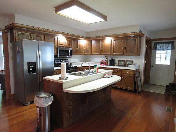 Here is the home you have been dreaming of. This home is located on 3 beautiful acres with mature trees, large yard, very nice country setting, close to all the conveniences of town. This home has 3 bedrooms, master bedroom has full bath, lots of shelves and storage. Huge family room for entertaining, living room with fireplace. Nice eat in kitchen with custom cabinets built by Hart Cabinets. All on a full basement. Pole barn for all your toys, garden shed, schedule your showing today. All appliances are new except dishwasher, new water heater, new bladder tank and pump.