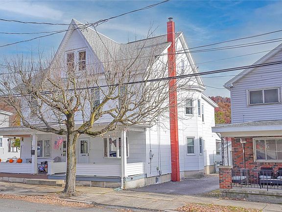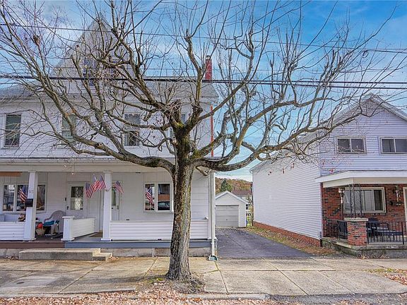 Superbly maintained Tamaqua Twin offers an extraordinary amount of space and surprising bonuses abound! A covered front porch welcomes you into a double reception space, ideal for living and dining rooms. The space is separated by a charming, original wood pillared divider, with built-in, glass door bookcases reflecting the lovely woodwork of the home's stair railing. The spacious kitchen offers bonuses with dishwasher, garbage disposal, ample Cherry Wood cabinet space and room to eat-in! Beyond the kitchen a mud room with washer hook-up, half-bath, and access to the home's rear, covered porch. Upstairs, three well-sized bedrooms each boast ample light from their numerous windows! A full, hall bath completes the second story. Upstairs, a finished attic offers extra living space or even a fourth bed! Outside, off street parking is found in a side driveway connecting the front to a one-car side garage. A lovely flat yard is accessed via the back porch and to the end of the property a marvelous three car garage! The home is located with convenient access to Route 309 as well as Tamaqua's downtown, and within the Tamaqua School District where graduates qualify for the two-year LCCC Scholarship program! With its location, ample space, flawless maintenance, off street parking in the driveway or in one of the four garage spaces, and new windows throughout, you must see this home!