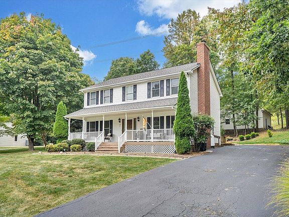 Wonderful 4 BR, 3 BA Two-Story home located in lovely White Oak subdivision of Botetourt County. Home features 9 ft ceilings, 2024 (2) New Dual Zoned Heat Pumps, Covered front porch, Screened back porch, Massive 30x30 detached garage with loft, 2 Primary suites -one on entry and Laundry on Entry as well. Nice Eat-in-kitchen with mini island, large additional BR's, walk-in closets in both Primary suites, jetted tub in upper level Primary suite. Situated on an acre lot with a gorgeous setting. Just looking for your finishing touches. Property is zoned A-1. Backs up to National Forest so no one can build behind you. New 30 yr Arch. Roof-home has a 2nd driveway leading to Detached Garage with loft.