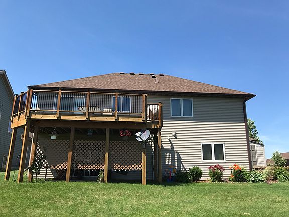 This home has a beautiful brick archway making for some impressive curb appeal. It also offers ample storage space. The 3 car heated garage has plenty of built in cabinets for all your tools and more. A storage shed is also included behind the garage for additional tools and toys. With large windows, the interior brings in great natural light throughout the day. The kitchen is open concept and has high vaulted ceilings. The two large upstairs bedrooms have walk in closets with plenty of shelving. The main bathroom also features a Jacuzzi tub. The big downstairs family room is sure to fit all your families needs. It leads to a concrete walk-out patio that is perfect for relaxing on a porch swing and enjoying the summer breezes. And, with a brand new AC unit, you will be sure to stay cool all summer long. The downstairs also features two more bedrooms, a large bathroom, a laundry room and a spacious under-the-stair storage area. Located on a quiet cul-de-sac surrounded by farmland, it is the perfect spot for your family to relax and enjoy the perks of small town living.