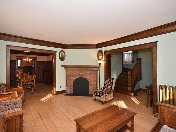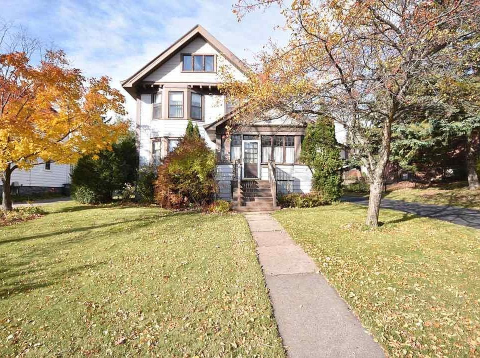 Woodland Wonderland! This beautiful 5-Bedroom/3-Bathroom 2.5-story home was built in 1909 with lavish finishes that still come through today. The house has natural woodwork seen throughout, crown moulding, hardwood flooring, an updated kitchen, fabulous enclosed porch, 2 fireplaces, plenty of storage space, & lots of new windows (2012). On the main level, the gorgeous living room & dining room connect you to the refinished kitchen. Remodeled in 2013, new plumbing, wiring, insulation, windows, roof, doors, and floors were put into the kitchen to get it running. Then added were the appliances, including Refrigerator (2016), Stove (2013), Microwave (2013), and Dishwasher (2013). Under cabinet lighting was installed under the Oak wood cabinets that have pullouts and lazy susan. The kitchen also includes a Pantry, Trac lighting, GFCIs, laminate flooring, register heat, & laminate countertops. Continuing on the main level is the laundry room, with Washer & Dryer, sink washing area, and toilet. Always good to have a bathroom on the main level! Off to the side is one of the best rooms in the house; a fantastic sitting room with an additional fireplace, natural woodwork, hardwood flooring, gorgeous windows, & fantastic French doors that open into the room is one more space to cozy up in. Upstairs on the second level is a full bathroom with tub and shower, the Master Bedroom, 2 additional bedrooms, & a ¾ bathroom. The Master Bedroom is incredible with 3 closets, 2 of which are cedar lined, & floor to ceiling built-in drawers. It's truly quite the dream closet arrangement. The 3rd floor includes 2 additional bedrooms with more closet space! This home is full of charm & well-utilized square footage. The basement is poured concrete and unfinished with both a utility room & storage room where you can find a High efficiency gas boiler (2016) and a wrapped water heater, a new sump pump (2014), floor drain, +100 amp breaker panel (2012), an additional storage room with a washtub basin and built-in shelving. The exterior of the home includes an asphalt roof, steel siding, gutters & downspouts, a detached 2-stall garage with lights & new opener (2017), and a newly paved asphalt driveway for off-street parking designed to both direct water away from the home as well as make snow blowing easier! The fantastic yard includes great landscaping, and 2 apple trees. Once you've experienced this home, you'll be Wonderstruck by this Woodland Wonderland!