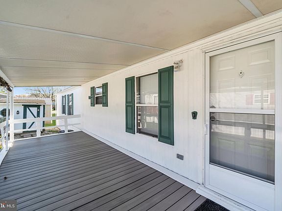 A Spartan Village gem! Welcome to this beautiful & bright Skyline Hampshire model, nestled on a quiet street facing nature & open land! This charming unit has 2 bedrooms & 2 FULL bathrooms, one of which is in the primary bedroom and features a walk-in shower & jacuzzi jet soaking tub. The spacious center of the home showcases an eat-in kitchen with optional counter seating & a large, open living area as well as a washer/dryer area. This main living space is flanked by bedrooms on either side of the home for privacy. New upgrades to this clean & impeccable home include: All new laminate flooring; Newer Hot Water Heater (2022) & Newer Forced Hot Air Heater (2024). Do not miss the gorgeous composite covered deck (installed 2022) to enjoy your morning coffee on. For additional storage, an 8x10 shed is included. Do not miss this meticulously maintained home...a true delight!