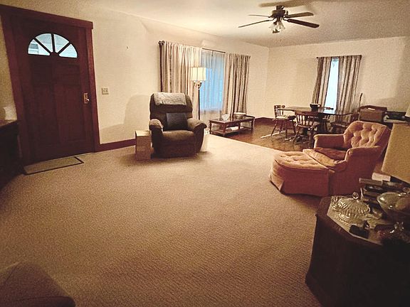 Spacious living on an oversized lot perfect for a growing family or business owner . Plenty of parking with two detached garages as well as an additional driveway that leads to a concrete parking pad at the rear of the house for easy entry. One garage features 2 bays and an attached office while the other is a one car garage perfect for storing outdoor equipment. House has hardwood flooring throughout beneath carpeted areas. Newly added ensuite with a walk-in shower in a large modern bathroom. Laundry room with plenty of space for all essentials. Bright kitchen area with plenty of counterspace, and cabinets featuring a built-in spice rack, tasteful colors with crown moldings. Large living room/dining room combination with hardwood and carpeted flooring with plenty of room for living or entertaining.
