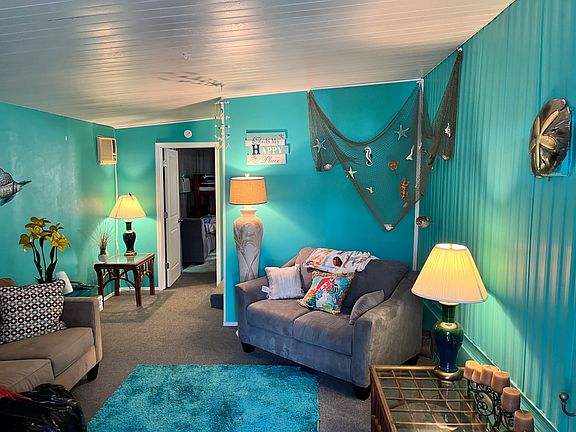 This home is in a 55+ community on a rented/leased lot (~410/mo) This 2BR/2BA mobile home has a nearly full length add-on (12x40) that provides double-wide space in a nicely upgraded single-wide. It comes partially furnished and with some turnkey items. This home is clean and move-in ready. Fresh custom paint and attention- to-detail in the right places. Lots of upgrades throughout. Perfect for year round or seasonal living. The home is comforably cooled with 4 Window/Wall AC units. The washer/dryer is also included. There is a covered sitting area out front. The carport is 3 car large for plenty of room to store vehicles. Outdoor storage includes 2 secure sheds. There is a 12 x40 enclosed, fully carpeted, add-on that contains a bedroom and full bath with walk-in shower. There is also a living-room area in this recently added space. All of the floors in the main home area upgraded 3/4 plywood for sound floor stability, Open living, dining and eat-in kitchen. Fresh Custom paint applied, in tasteful coastal colors, throughout the entire home! Wood accent wall in living area. The Kitchen has upgraded counter tops and new sink fixtures. Hall bath is a full bath with a upgraded single sink. Includes tub/shower combo. There are plenty of closets for storage. The home is carpeted with linoleum in the baths and kitchen. The lot rent is ~$420 (To Be Determined- actual amount provided by park management) and includes lawn cutting, edging and blowing. Capital Mobile Park is a 55+, pet friendly community managed by Wayside Glen All Ages Community. The location is within walking distance of shopping and services.