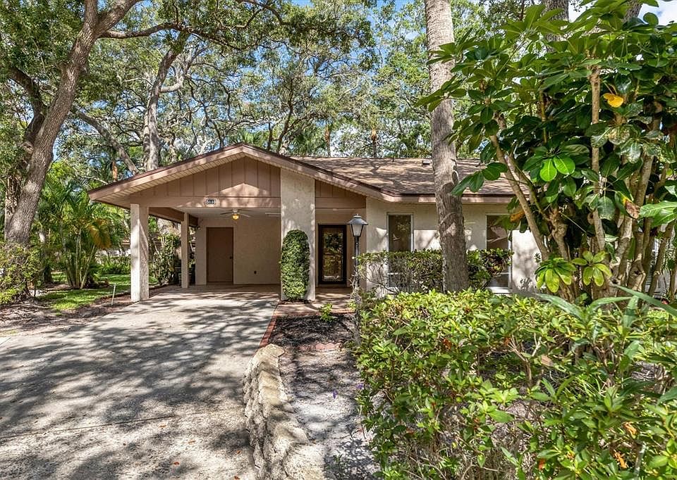 Enjoy an affordable maintenance free lifestyle in this 2BD/2BA split-plan condo with a spacious attached carport. This charming, paired villa is ideally located on a quiet cul-de-sac and nestled among mature oaks. Woodland Village is a small community with affordable fees, no age restrictions and pet friendly, allowing 1 pet up to 30 lbs. Freshly painted interior and easy maintenance with laminate flooring throughout living areas, no carpet. Step in from the foyer entry to the generous sized great room with crown molding details. The inviting updated kitchen is tucked away from the great room and offers added cabinet storage, closet pantry, and laundry closet. Located in the rear of the residence, the owner's suite has dual closets and an updated ensuite bath with step-in shower. The guest bedroom is located at the front of the home and is adjacent to the guest bath. An enclosed lanai offers an additional storage closet and the perfect setting to enjoy the stunning colors of the Florida sunset. The clubhouse is a great gathering spot with a pool table and kitchen, enjoy swimming year-round in the heated community pool. Centrally located, convenient to shopping, restaurants, IMG Academy & SCF campuses and a 15-minute drive to the gulf beaches. These popular villas rarely come on the market, don’t miss this opportunity!