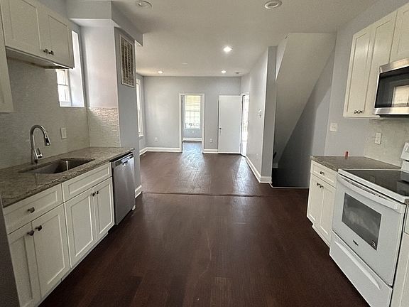 Recently renovated 2 bedroom and a Den. 1 1/2 Bathrooms. Unit spans a basement and a first floor of two story duplex. In the basement, you will find a bedroom, full bath, den and a laundry room. You also can exit to a large fully fenced backyard from the basement. On the first floor. Large open kitchen and living room, another bedroom and half bath. From the kitchen you can also exit to a nice balcony overlooking backyard. Building was fully renovated couple years ago. Central Air, nice kitchen with granite counters, modern bathrooms Fully renovated duplex. Three levels - basement, 1st, 2nd 2 bedroom plus a Den with 1 1/2 bedrooms occupies basement and 1st floor. 2 bedroom 1 bath on the second floor Nice fully fenced backyard