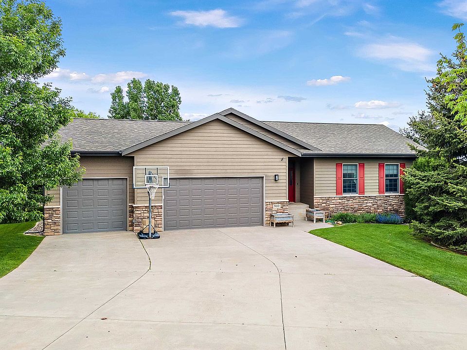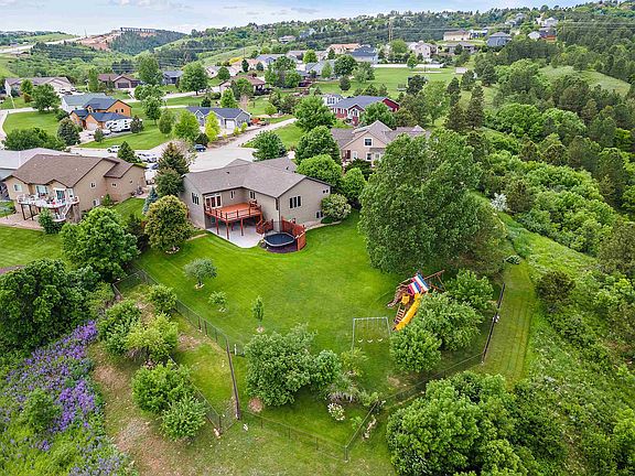 Listed by Jenni Brue, Keller Williams Realty, 605-381-1055. Need bedrooms? This is your new home! Seven bedrooms complete this 4200+ square foot home! This home has been meticulously well cared for and for the first time ever is ready for new owners. It's nicely situated at the end of a cul-de-sac on a 1.31 acre lot in town! You will feel like you are in your own private park sitting on the back northeast facing deck overlooking the many mature trees which include apple, pear & cherry trees as well as a fantastic view of the city. Inside you will find an open concept of the living room, kitchen & large dining area, perfect for entertaining. There are three large bedrooms on the main level including the Master Suite with a vaulted ceiling, and picture window overlooking the backyard. Downstairs has an exceptional sized family room with gas fireplace which walks out to the patio. Four large bedrooms complete this level, all which have garden level windows. Laundry hookups available in the lower level as well as 10'x19' laundry room on the main floor. The basement has all new carpet, paint and new fixtures in the bathroom. The furnace, AC & water heater were replaced in 2021. In 2011 the siding, windows and deck were replaced due to a massive hail storm. You will have plenty of space to spread out in this easy living home. Schedule a showing today!