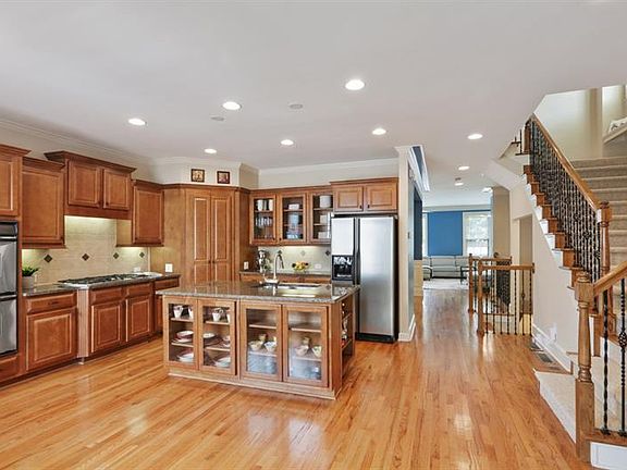 Today is the day to call stately townhouse your new home! Situated in the center of this community, the townhouse features a side entrance for privacy. Located on a quiet street with ample guest parking there is no lack of space to host your friends and family. Hardwood floors run throughout the main level flowing throughout this open floor plan. You will fall in love with the spacious kitchen with island, the custom built-in pantry, double ovens, microwave drawer, it really features all of the upgrades offered in a new home. The sunroom flows off of the kitchen offering an alternative location for your eat-in kitchen area or serving as a great location for your home office or playroom. The front of the house features an oversized living room anchored by built-in cabinetry and shelving along with a gas fireplace with an abundance of natural light thanks to two walls of windows and is separate yet open to the large dining room. The owner's suite with the bathroom of your dreams calls your name along with two secondary bedrooms upstairs. The terrace level features an additional bedroom currently being used as a second living space this area is fully wired for surround sound speakers and includes a wet bar with custom cabinetry with a sink and built-in ice maker. All complemented by the neighborhood amenities including a swimming pool, tennis and workout facility. You really could not ask for more!