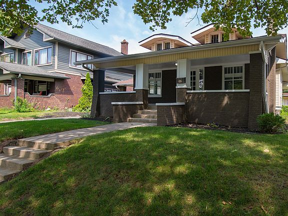 Irvington Classic on the Pleasant Run Parkway! Completely refurbished 3 bedroom, 1 1/2 baths and office/den. Living room and dining room feature rich mahogany hardwoods. Kitchen now opens up to the dining room for great entertaining. Granite counter tops and stainless steel appliances. Office/den could be a 4th bedroom, has closet. Sweet front porch for relaxing overlooks Kin Hubbard park. Basement has a number of rooms waiting for you to finish them off. Basement has it's own access to the outside. Porte cochere leads to a two car garage. New furnace. Tankless water heater. Walk up attic for storage. Don't miss this one!