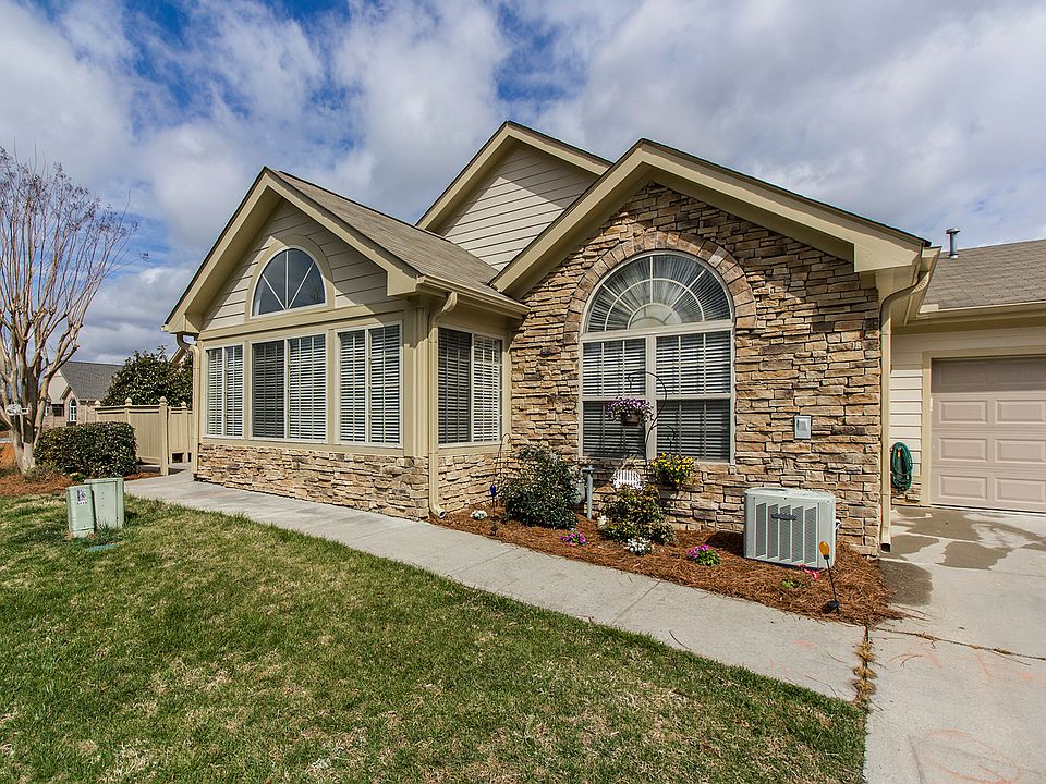 Beautiful updated townhome close to Wendover and I-40! Vaulted ceilings throughout! Fresh paint. Newer kitchen with beautiful cabinets, stainless steel appliances, granite counters, and tile backsplash. Large master suite with updated bath and HUGE closet. Bright sunroom for additional living area. Private location within the neighborhood. Amenities include pool, clubhouse, putting green and more.