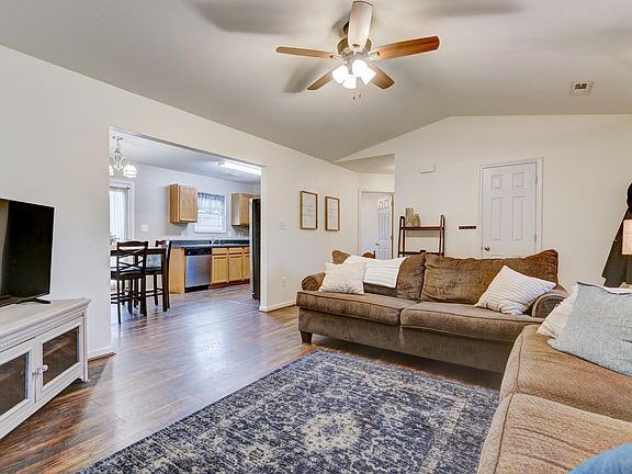 BACK ON MARKET DUE TO BUYER UNABLE TO GET FINANCING! This cozy home draws you in from the moment you drive into the cul-de-sac. The neat exterior invites you into the open living, dining & kitchen, all kitchen appliances stay, Split bedrooms, master has attached bath, huge 12'' x 24' deck with built-in seating to enjoy the large fenced yard