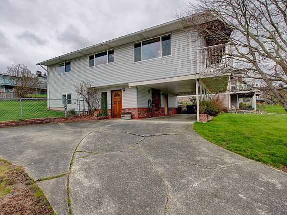 Stunning Home with Versatile Layout & Prime Location This beautifully designed home offers a spacious and open floor plan that combines modern comforts with functional living. The main level features a cozy great room with a central gas fireplace and gleaming hardwood floors, complemented by three sliding glass doors that open to a wrap-around deck and a covered patio perfect for enjoying the outdoors year-round. The seamless flow from the great room to the dining area, breakfast bar, and kitchen creates an inviting space for entertaining. The chef's kitchen boasts sleek stainless steel appliances, granite countertops, and custom cabinetry, including a French door refrigerator with bottom freezer and a gas range/oven with warming drawer combo. The upper level also includes two well-sized bedrooms and a full bathroom, offering plenty of space for rest and relaxation. Downstairs, the finished basement provides additional living space with a large family room, another bedroom, and a full bathroom. A separate laundry room adds convenience. The basement also features an internal privacy door and its own separate entrance ideal for a private "in-law" suite or roommate living arrangement, providing direct access without needing to use the stairs. Outside, you'll find a charming two-vehicle carport equipped with a wood-burning fireplace, perfect for cozy outdoor gatherings even on cool, rainy Northwest days. The fully fenced backyard is beautifully landscaped, offering a serene environment to unwind or entertain. Located less than a mile from the San Juan Ferry and just a 5-minute drive to downtown Anacortes, this home combines peaceful living with excellent proximity to shopping, dining, and outdoor activities. With gas and electric heating, public water/sewer, and a dog-friendly policy (upon approval and deposit), this home offers both comfort and convenience.