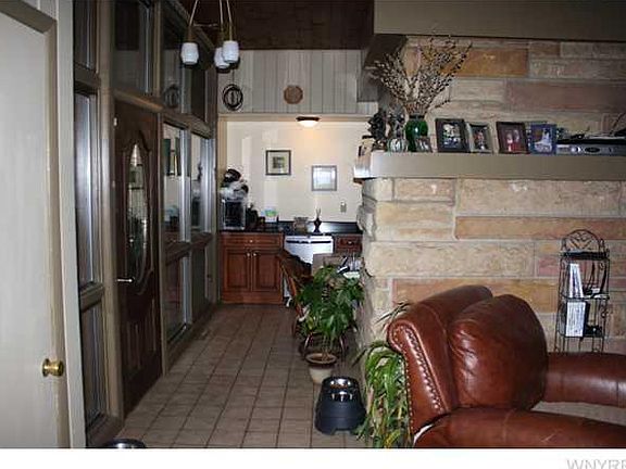 Situated on serene & private 5.8 acres, this ranch offers so much. Enter the tree lined winding driveway to floor to ceiling windowed entry. Bright kitchen incl. appliances, ceramic backsplash, breakfast bar & patio. Wood paneled dining rm has access to sliders and 3 season rm. Living rm. w/beamed ceiling and WBFP (NRTC) overlooks park like lot with stocked pond. 2+ bedrooms, master w/walk in closet & bath. 1st fl laundry, pantry in mudroom off of 2 car gar. Lots of storage, separate pet fenced area, inv. fence. Many updates. Williamsville schools. Rural setting, but close to all amenities.