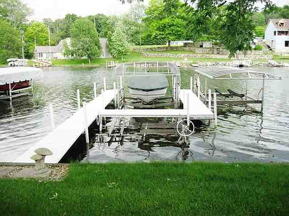 Start here for a lifestyle of easy lake living. This home is situated on a choice lakefront lot in Jimmerson Shores and has mature shade trees and new homes on both sides. It shows like new inside and is a sizzling buy. It comes with all the furnishings, a very nice maintenance free pier, 2-boat lifts, Jet Ski lift and a storage shed. The three season room offer extra relaxing and entertaining space. Jimmerson Shores is one of Steuben County’s best kept secrets. As a coop park your taxes for the property are included in the monthly association fee of $120.00 (very affordable). Taxes on the home are $77.00 per yr. The assoc. fee also includes water, sewer and all common area maintenance. The park is well maintained and has a nice swim beach area, playground and boat storage area.
