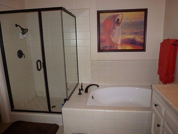 Move in ready condo in North West Fresno is located in a small 31 unit gated complex. Upon entering you will be greeted by the spacious dining room and family room that are nestled up to a cozy fireplace. To your Left you will find a large isolated bedroom/bathroom and beautifully updated kitchen. The kitchen boasts new granite counter tops, gas cook top, ranch style sink, breakfast bar, eating area, and access to the backyard. The large master bedroom is located in the back of the condo giving you plenty of privacy. The master bathroom is complete with his and her sinks, shower, soaking tub, and walk-in closet. You can also access the backyard from the master bedroom. The backyard has a nice sized patio area and concrete walkway complimented by beautiful greenery. This condo really has it all. Go see it today!