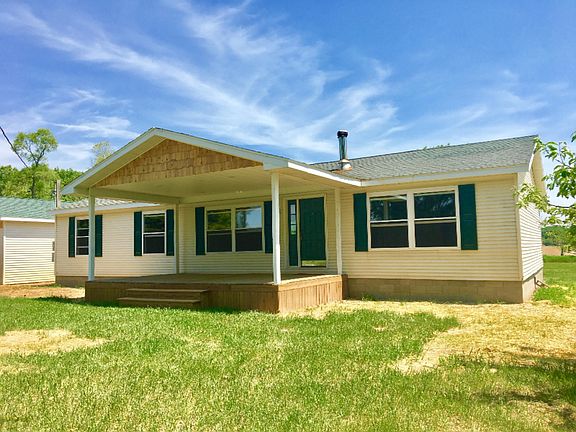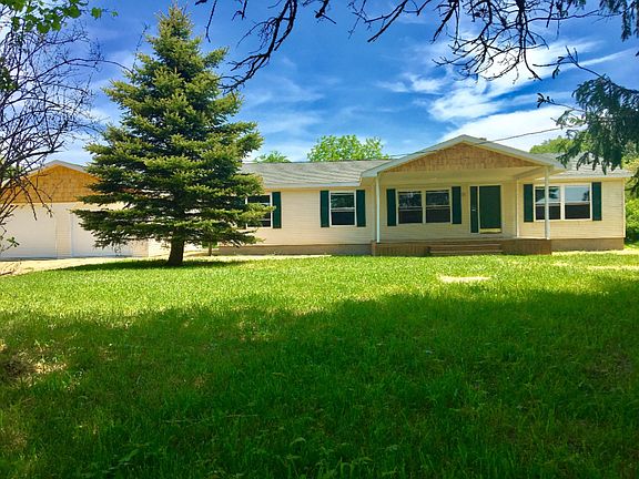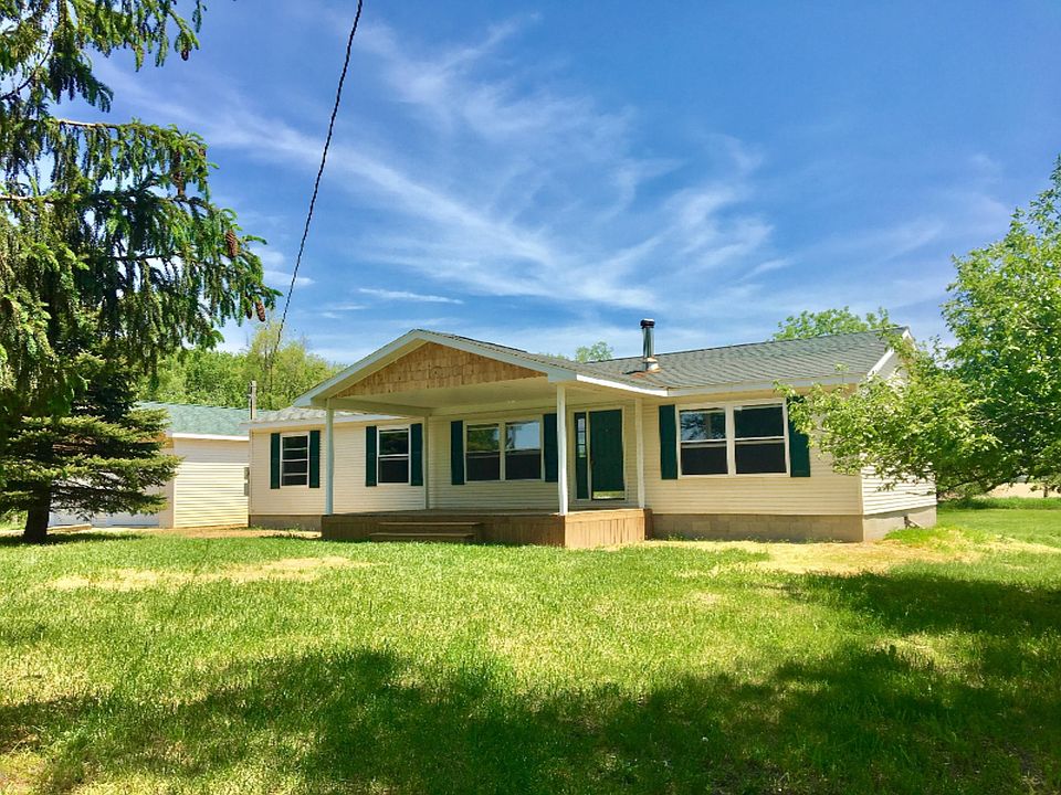 Check out this beautifully re-done 3 bedroom/2 bathroom home on 4 acres with pond and 2-stall detached garage in a private, country setting. New windows, new kitchen cabinets, freshly painted. Awesome covered front porch and backyard pond.
