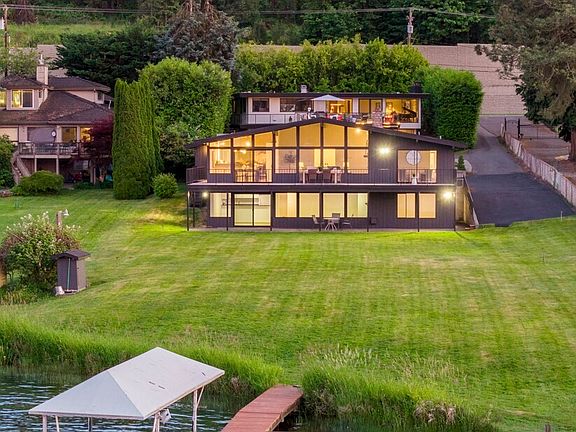 Built in 1974 and just renovated with a true mid-century modern aesthetic, this lakefront home with 90 feet of waterfront on a ½ acre offers walls of windows with sweeping water views. Open floor plan with vaulted ceilings, main-level primary suite, and spacious living areas designed to highlight natural light and the lake. Expansive porch and huge level yard lead to a private dock with boat lift, suitable for boats, jet skis, paddleboards, etc. Convenient layout with laundry on main level and plenty of parking. A rare opportunity to own a home that combines timeless design with the ultimate lake lifestyle. Lower level has a separate kitchen, rec room, bedrooms, etc. Property may qualify for sub-division in to 2-3 lots, buyer to verify.