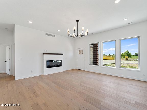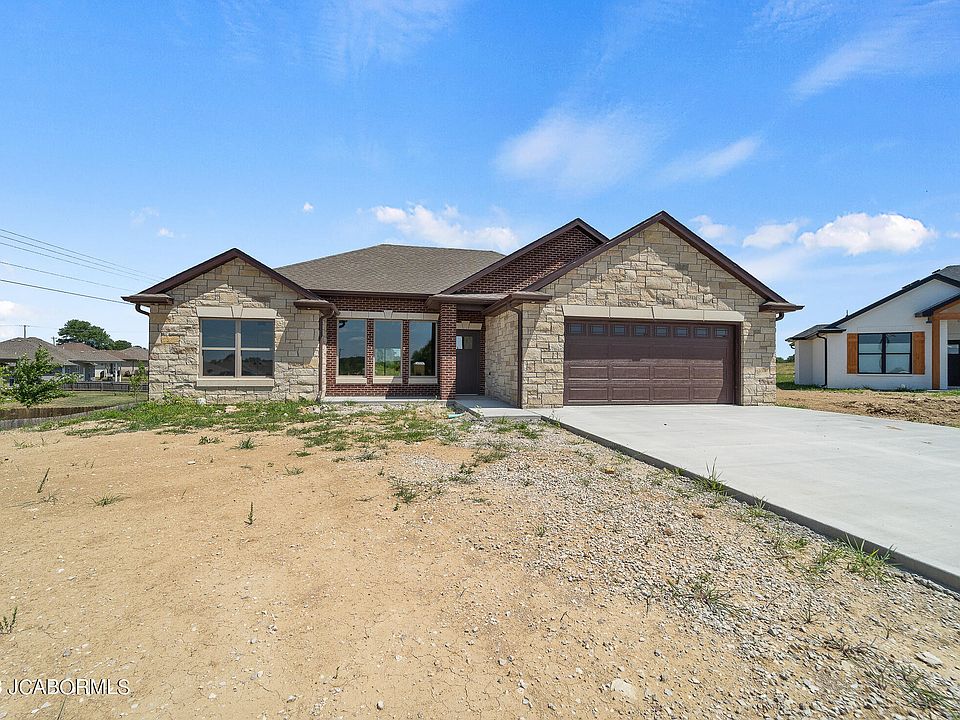 Introducing a stunning 4-sided, stone and brick ranch, nestled on a short cul-de-sac in the charming city of Ashland. This elegant home boasts over 1600 sq'ft, a 2-car garage, and beautiful hardwood flooring throughout. You will be greeted with an open living room featuring a triple set of picture windows, which provide fabulous natural lighting, and a wall-mounted electric fireplace with shiplap detail. The spectacular kitchen is complete with a large center island, gleaming quartz counters, ample counter space, stainless appliances, and a large dining area that overlooks the backyard and covered patio. The split bedroom design ensures privacy, with the primary bedroom overlooking the backyard and showcasing a tray ceiling, a luxurious ensuite with dual sink vanity, patterned tile flooring, a beautiful, tiled shower, and a roomy walk-in closet. Two additional bedrooms and a hall bathroom are situated on the other side of the home, providing the ideal separation. The laundry room is conveniently located near the primary bedroom and garage entry, which doubles as a practical mudroom. This beautiful home is a must-see, offering both style and functionality. Buyer to verify any and all facts and information including but not limited to schools, sq. footage, taxes, room sizes, lot size, restrictions, zoning, etc.
