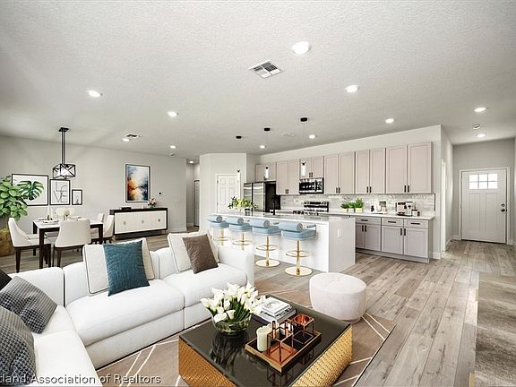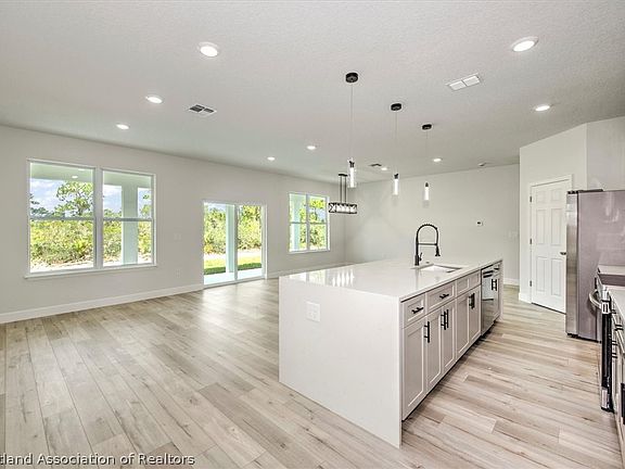 Welcome to your dream home in the beautiful Sun N Lakes Community in Sebring, Florida. This stunning new construction home offers luxurious living with modern amenities, featuring 4 bedrooms and 3 baths. The large master suite is a true retreat, boasting a spacious walk-in closet and an expansive en suite master bath, providing the perfect sanctuary for relaxation. Additionally, a second bedroom features its own private en suite bathroom, providing comfort and privacy for guests or family members. The home showcases an open and spacious layout with a great room and a split floor plan, enhanced by soaring 9'4" ceilings. The gourmet kitchen is a chef's delight, featuring a 10' quartz waterfall island with bar seating and elegant quartz countertops and tiled backsplash, ideal for both casual dining and entertaining. The easy-to-maintain vinyl flooring throughout the home adds to its appeal. Step outside to the 8' x 30' open lanai, perfect for enjoying the beautiful Florida weather and outdoor living. The Sun N Lakes community offers an array of amenities, including membership access to two championship golf courses, a recreational complex with tennis and pickle ball courts, a fitness center, a zero-entry heated lagoon pool, a state-of-the-art playground, a clubhouse, and an on-site restaurant. Conveniently located near essential amenities, shopping, and healthcare facilities, this home provides a serene lifestyle in Florida's Heartland in south-central Florida. Don’t miss out on the opportunity to own this exceptional property in a vibrant and active neighborhood. Schedule a private tour and make this beautiful house your new home!
