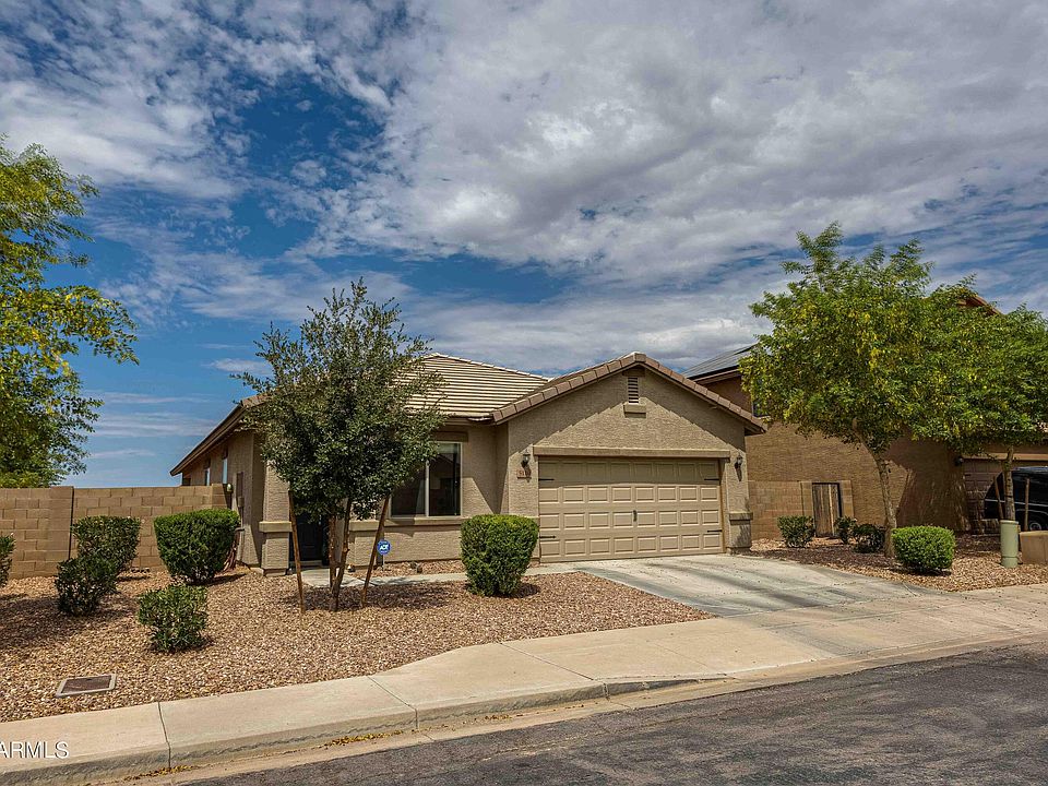 The very spacious Prescott model has 3 bedrooms plus a den, NEW vinyl flooring, granite counters and energy efficient appliances. The primary bedroom is complete with a private bathroom with a separate shower and tub and a walk-in closet. The kitchen and dining room are equip with TP-Link Kasa Smart Switches and the home has Taexx integrated home solutions pest control. The backyard was just fully landscaped June 2023 with turf, brick pavers and a pergola to truly enjoy the outdoor living and very private with no neighbors behind you. Living in Crystal Vista offers a range of amenities for residents to enjoy. The community park includes basketball courts and a children's playground. There are also BBQ areas and picnic ramadas, and plenty of walking trails.