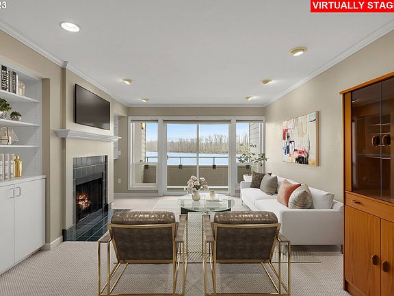 Unobstructed river views from this ideal remodeled home. Enjoy the tranquility and natural beauty from your private covered deck above the gorgeous Willamette Greenbelt Pathway year-round. The primary suite has a fantastic east-facing river view. Upgraded open kitchen, custom maple cabinets, new built-in microwave, extensively upgraded lighting throughout the unit. Cozy fireplace, storage + Two parking spaces.