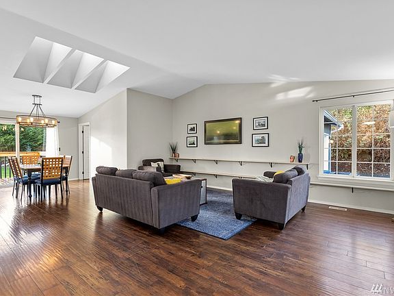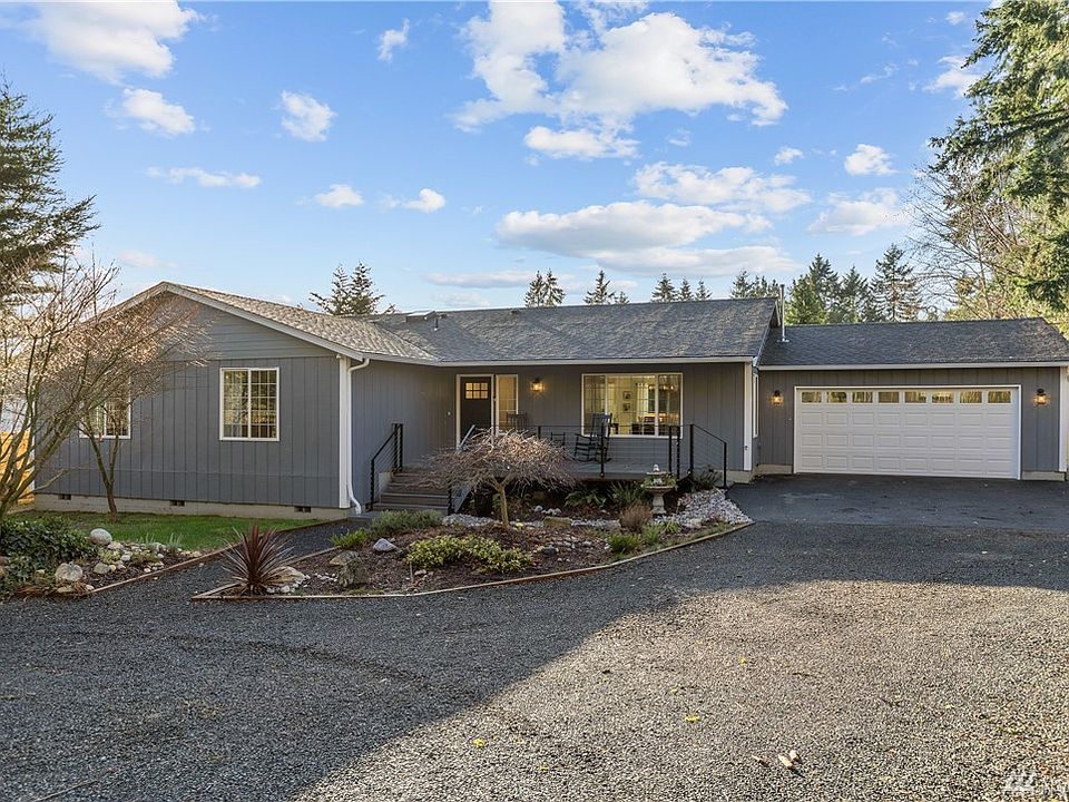 Nestled among the trees, on just shy of an acre, sits this remodeled turnkey rambler with quality updates inside & out! This 3bed, 2bath (plus large bonus room) home has it all including A/C for hot days, vaulted ceilings with skylights, an open concept living area + dining room, updated bathrooms & a large modern kitchen with stainless steel appliances including a new gas range. Don't miss the attached 2-car garage that also functions as a heated workshop with a vent system, sealed floors + a 220v outlet! The exterior boasts fresh paint, new decking in front & back, a custom cedar & welded steel fence, & a yard designed with a variety of trees, plants & flowers to create a private retreat! Large gravel driveway perfect for RV/boat parking.