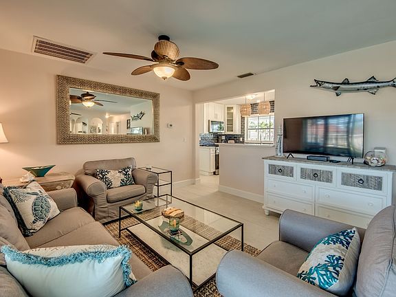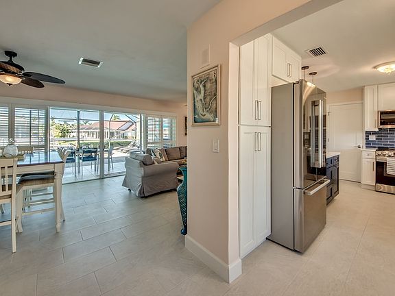 One mile from downtown, entertainment district. Direct Gulf access with a 10k boat lift with an opportunity to rent our 24 ft, 2024 Bentley Tri-toon. On the end of a cul da sac road that offers privacy and minimum traffic. Enjoy sunsets in the electric heated pool(you control the thermostat) that faces the western sky. This 3 bedroom 2 bathroom has recently been remodeled, floor to ceiling in every room, including state-of-the art impact windows, doors and sliders. Located within 2 miles of Cape Corals best restaurants, coffee shops, grocery stores. Take one of the four bikes to the Yacht Club Beach, Fishing Pier, or Boat House Tiki Bar & Grill, that is 2 miles away. Tenant's are responsible for any damage caused to the rental property during their stay.