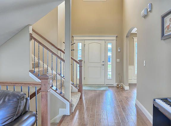 Beautiful four bedroom home situated on the water in popular Wills Trace Subdivision. The open floorplan provides over 3600 sq.ft. of living space and lends itself for great entertaining and/or every day living. Natural light floods the interior and welcomes you to discover the fine finishes that include warm hardwood floors throughout main living areas, granite countertops, tile backsplash, stainless steel appliances, 9ft. ceilings or higher thoughout and so much more! The spacious master suite features a walk-in closet and master bath with double vanity, tiled shower and separate whirlpool tub. Large rec room/family room in basement, full bath, 5th bedroom plus room for storage. Enjoy the views of the water from the back patio. Don't let this one get away, call today to schedule your private showing.