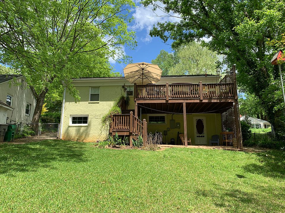 Investors!! Flippers!! Zoned R 8!!Charming ranch/basement w/2 Baths +714 finished SF. basement. Screened porch entrance, "Up-and-Coming area", Rest on deck over looking a Serene wooded back yd. Walk -grocery & dining. 1st flr. 2 Bds -updated bath, hardwood floors upstairs, attic fan. Living/dining w/decorative, nonworking fireplace. Kitchen features: stainless steel sink, back-splash, refrigerator, gas-range-oven, dishwasher+ new disposal 42"cabinets+roll-outs. breakfast nook w/Jeld-Wend French doors leads to deck overlooks treed fenced backyard. 714 sf finished Bright Basement living - w/vinyl replacement windows,1 Bedroom+ensuite bath (2017) shower & custom vanity. Built-in bookcase in Den: a perfect home office. The heated-cooled unfinished basement area = washer/dry storage!!. Extensive professional landscaping, Exterior waterproofing by Dry Pro, freshly painted thru out. Updates Galore: Plumbing, New Electrical panel,Windows, Doors, Porch, Bath, Dry Basement, See list & invoices