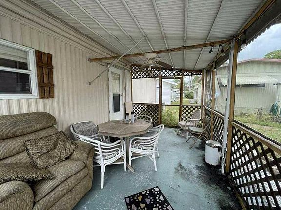 This 1BR/1BA mobile home is great for year round or seasonal living! A little TLC will go a long way in this one... The home is cooled with 3 wall a/c units (there is ductwork and a non-working 2012 central a/c uni). There is a 12 x15 screened lanai for watching the world go by. There is room to roam in this 12 x 50 single wide mobile with double wide space! There is a 10 x 30 add on that includes additional living space (or it could be used for a dining area); and a bonus room that could be used for a second bedroom or office with an exit off the back. The kitchen has an island for serving and food prep. The bedroom has carpet, two closets and a wall a/c. The bathroom has vinyl flooring, a single sink vanity and a shower/tub combination. The lot rent is $420 and includes lawn cutting, edging and blowing. Capital Mobile Park is a 55+, pet friendly community managed by Wayside Glen All Ages Community. The location is within walking distance of shopping and services.
