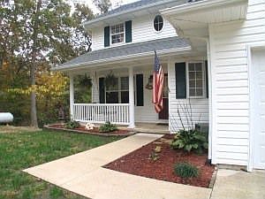 The total package! Mint condition! Classic country 2 story on 9 woodsy, private acres. Large bright kitchen w/lots of counter space & cabinets, full w/o basement, 16 minutes from Mall, 20 minutes to Sam's, on blacktop, screened porch & deck, quality construction, fireplace, great master w/walk-in & jetted tub, storage behind 4th bedroom/office is stubbed for bath, garden shed & big covered porch.
