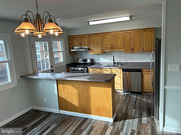 Extensively remodeled 3 story townhome in Brooklyn Park (Anne Arundel county). Home was renovated with new windows, doors,flooring, lighting, sidewalk and steps and bathrooms. Three bedrooms are are located upstairs with bathroom. Main floor is kitchen, dining room and living room. Lower floor has family room, full bath and 4th bedroom. All appliances were replaced (refrigerator, gas range, range hood, dishwasher, and front loading washer and dryer). Quiet street close to Arundel Village Park