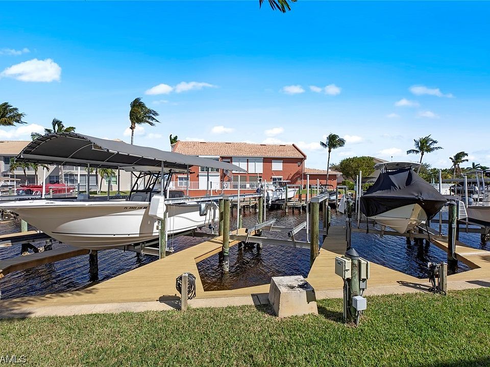 Discover the epitome of waterfront living in the prestigious Yacht Club area with condo-style comfort. This waterfront condo boasts 2 bedrooms, 2 baths, and den, providing an ideal blend of space and sophistication, with attached 2 car garage. Enjoy canal views from the screened balcony, overlooking your private boat dock and lift.