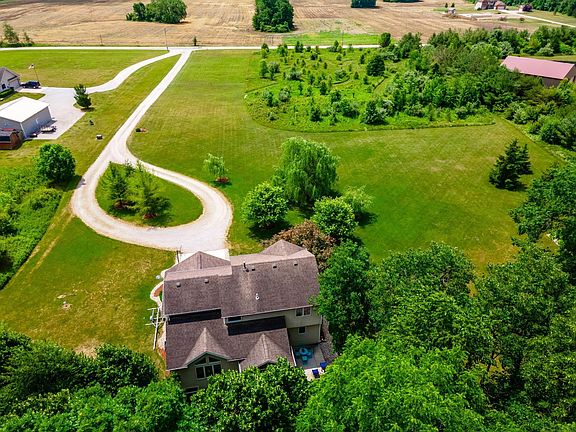 *OPEN HOUSE JULY 29th & 30TH, SATURDAY 2-4 & SUNDAY 1-3* This custom built Delagrange home is nestled on 5.15 acres with the most stunning, wooded backdrop. This secluded oasis features professional landscaping, trails with black raspberry bushes, raised garden beds, an acre of woods with sledding hills, and a custom built tree deck from which to admire the gorgeous views! Not to be outdone by the property it sits upon, this abode boasts stunning architecture in the vaulted great room with an angled ceiling, gas log fireplace, and trapezoid windows. Other desirable features include Aristokraft staggered cabinets, 6 panel solid core Masonite doors throughout, spray foam insulation, extra wide windows, main level laundry room with deep sink, huge owner’s suite, mud room conveniently located off of the garage, top of the line Andersen windows, fully floored attic, and ample storage throughout. The daylight basement was tastefully finished 2 years ago with vinyl plank flooring, can lighting, barn doors to camouflage the utility room/under stair storage area, central air and well/well tank were replaced 4 years ago, kitchen cabinets were painted, and the thermostats were also recently replaced. This home is perfectly finished off with a beautiful screened in porch with cathedral ceiling and incredible views in any direction you look.