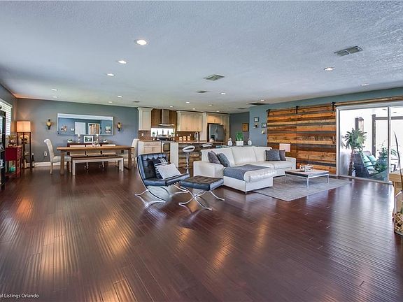Luxurious Belle Isle pool home with Conway Chain of Lakes access! This 3 bedroom, 2 bath, 2.5 garage home has been completely custom remodeled since 2015. The open floor plan features bamboo hard wood flooring that surrounds the great room and kitchen with stainless steel appliances, granite counter tops, auto-stop drawers, and over size island! Slide the custom built barn door to enter the back yard oasis that's perfect for entertaining and includes lush landscaping, covered patio, new pergola, and beautiful pool with LED color lighting! Amazing location and a must see!