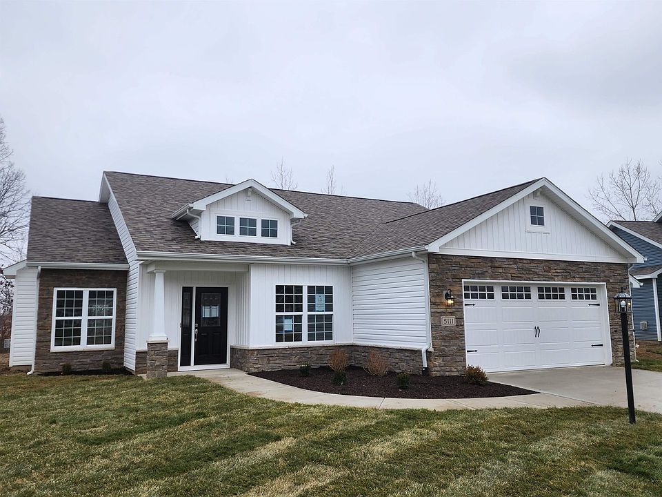 Located in The Cottages of Catania is the Rose' by Majestic Homes. The Rose' offers a beautiful stone front elevation, 3 bedrooms, 2 full baths, a large master suite with a tile shower, an open concept kitchen to great room, a sun room, laundry room, large dining area, and spacious 2 1/2 car garage. On top of the quality standards Majestic Homes is know for these homes also offer an emphasis on accessibility, quartz or granite kitchen countertops, custom Amish built cabinets throughout, blocking for grab bars in baths, Luxury Vinyl Plank throughout living areas for minimal threshold, full ceramic tile showers, 9' ceilings throughout, taller vanities in all baths, LED garage & attic lighting, and more. A few of our other standards include Tru Definition 35 year Shingles, 12" Exterior overhang around the entire perimeter, sod & irrigation in the front yard, Lennox 95% furnace, 50 gallon high efficiency water heater, programmable Wi-Fi Thermostat, 1/2" Spray Foam insulation w/Batt on all exterior living area walls, floored attic, water softener, programmable keypad, closet organizers, over & under LED cabinet lighting in the kitchen, Frigidaire Gallery Series Stainless appliances in the kitchen including refrigerator, Gas log fireplace, and more.