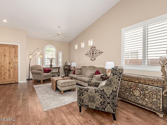 Range pricing: $359,000-$369,00 Rare opportunity in the gated community of LAS VILLAS! Charming 1,582 sq ft single-story Presley home in an community with only 31 residences and a sparkling pool. This spacious home features a main suite plus guest bedroom, bonus room, and versatile den - perfect for office, crafts, or guests, Walk in shower in main bath plus full guest bathroom Enjoy an open-concept kitchen with granite countertops, island, ceramic tile flooring, adjacent to a cozy den with raised-hearth gas fireplace. Formal living and dining rooms, wood-look flooring, quality shutters, and security doors add style and function. Relax or entertain in the flagstone front courtyard or private covered backyard patio. Prime location near shopping, hospitals, U of A, and entertainment